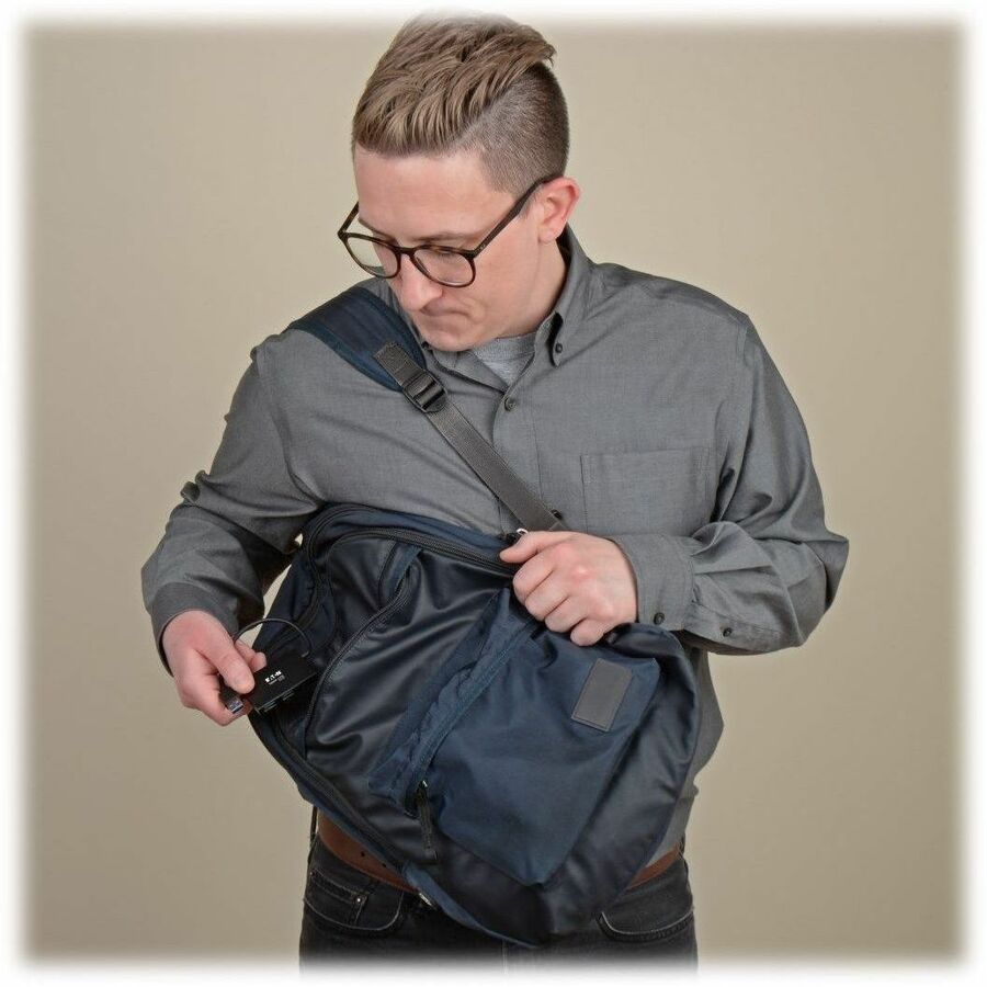 - Slim aluminum housing fits easily into purse or laptop bag for use anywhere
