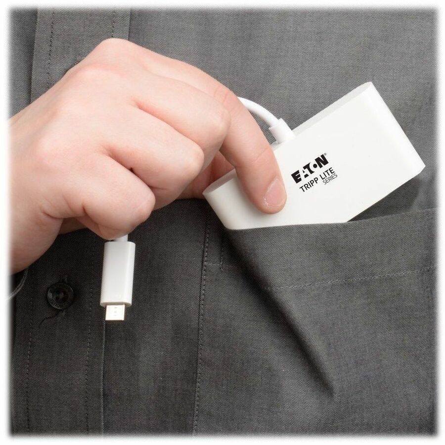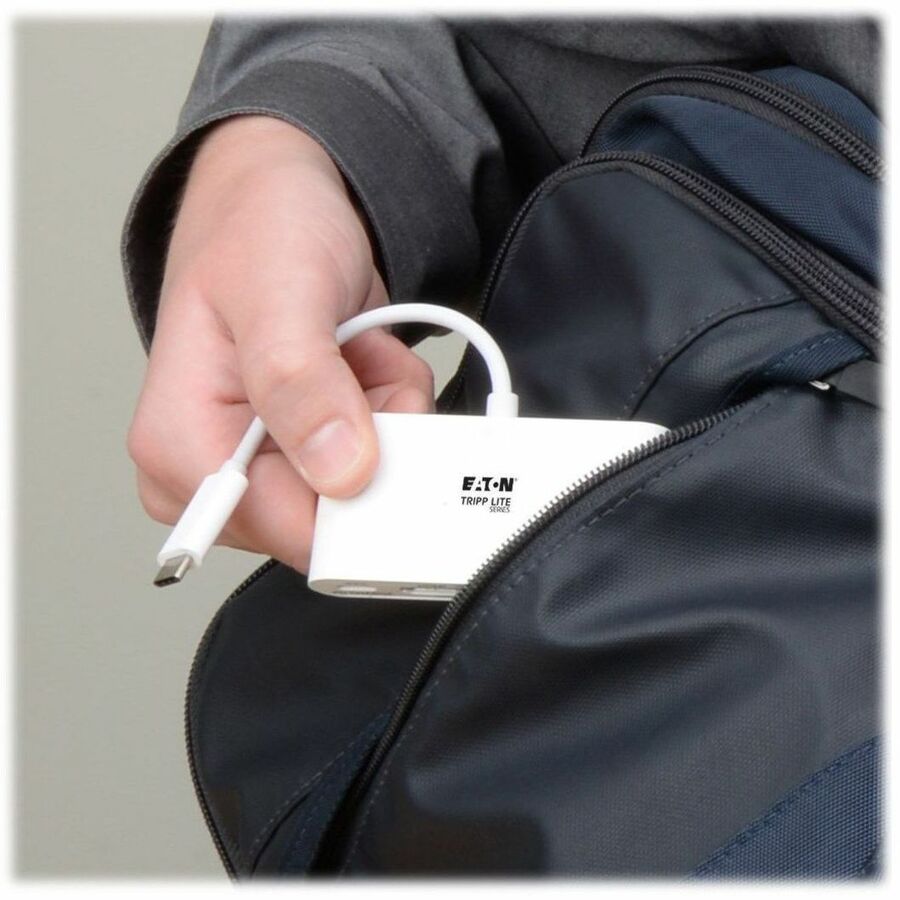 The U460-004-4A-C USB 3.1 Gen 1 USB-C Portable Hub expands the potential of your tablet, laptop, MacBook, Chromebook, smartphone or PC's USB-C or Thunderbolt 3 port. It's ideal for adding a thumb drive and other USB peripherals and powering and charging a PD Charging-compliant mobile device-all at the same time.
