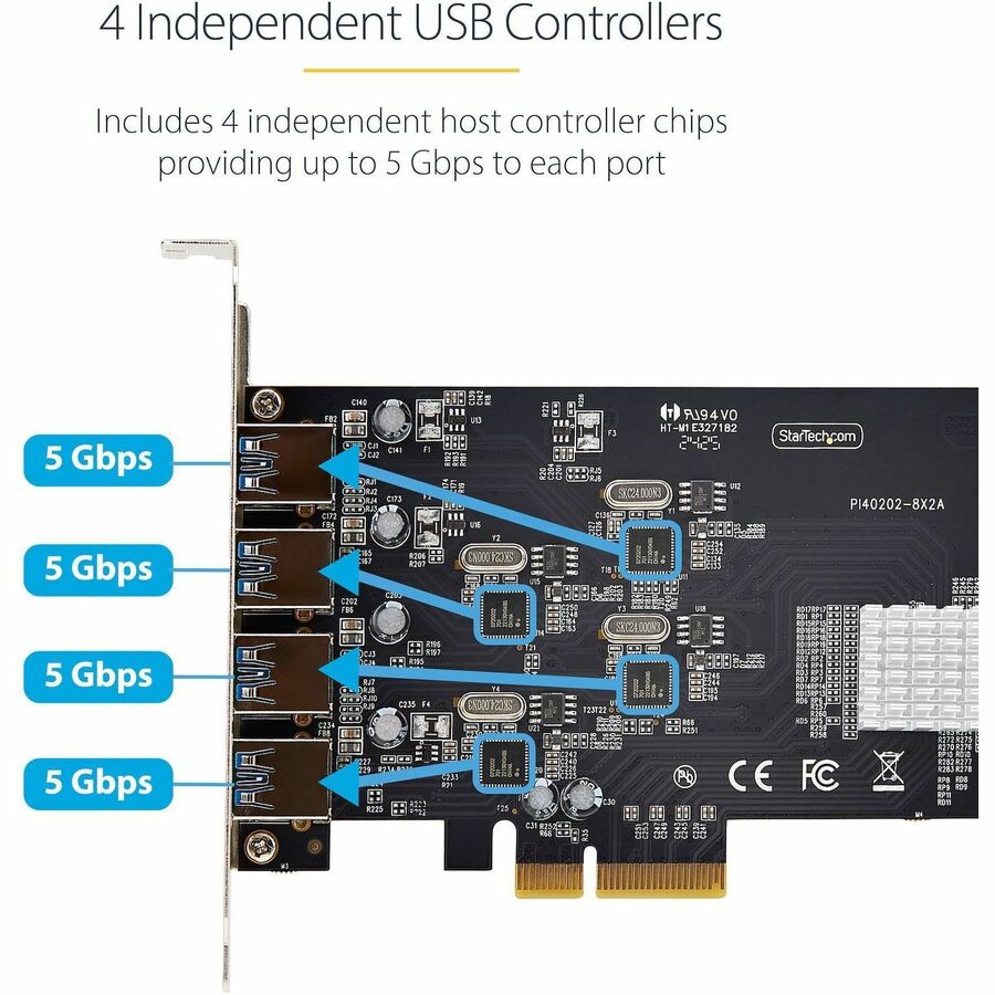 StarTech.com 4-Port USB PCIe Card, USB 3.2 5Gbps, PCI Express Expansion Card with 4x Independent USB Controllers, 4x USB-A Ports