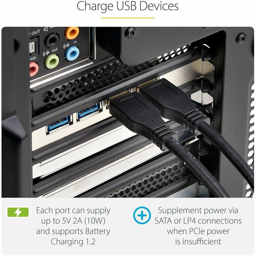- OPTIONAL POWER: USB PCIe Expansion Card with SATA/LP4 power connectors provides additional power to the USB ports (when motherboard power is insufficient), supporting the Battery Charging 1.2 (5V 1.5A) specification & providing up to 5V 2A (10W) per port