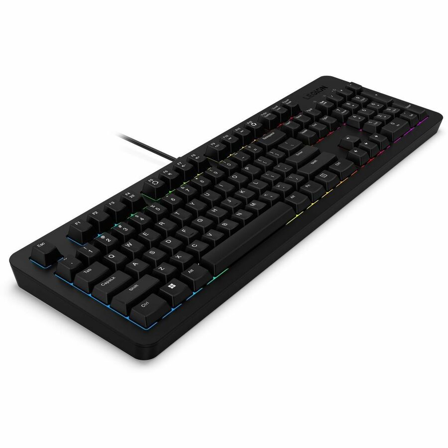Designed to level the playing field, the Lenovo Legion K310 RGB Gaming Keyboard gives entry-level gamers everything they need to compete with the pros, at a fraction of the cost. Full-size layout, programmable keys, and a 24-key rollover membrane with 5-zone RGB lighting set a strong foundation of style and performance. Compact design and adjustability make it the perfect companion for both tournaments and casual use.