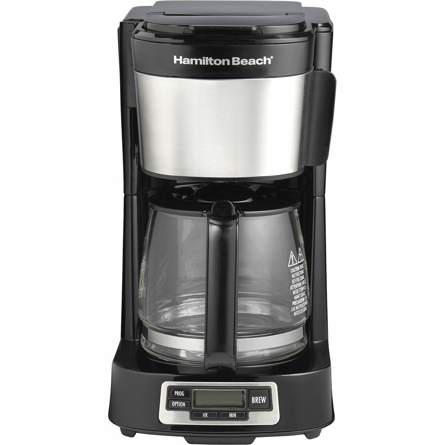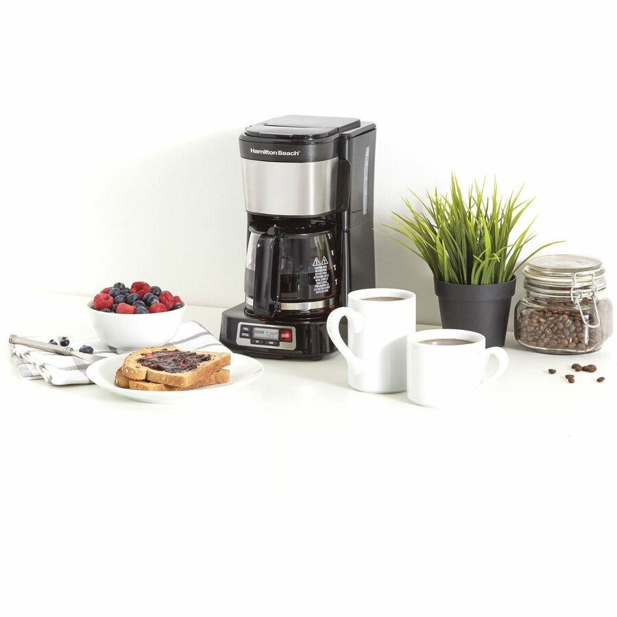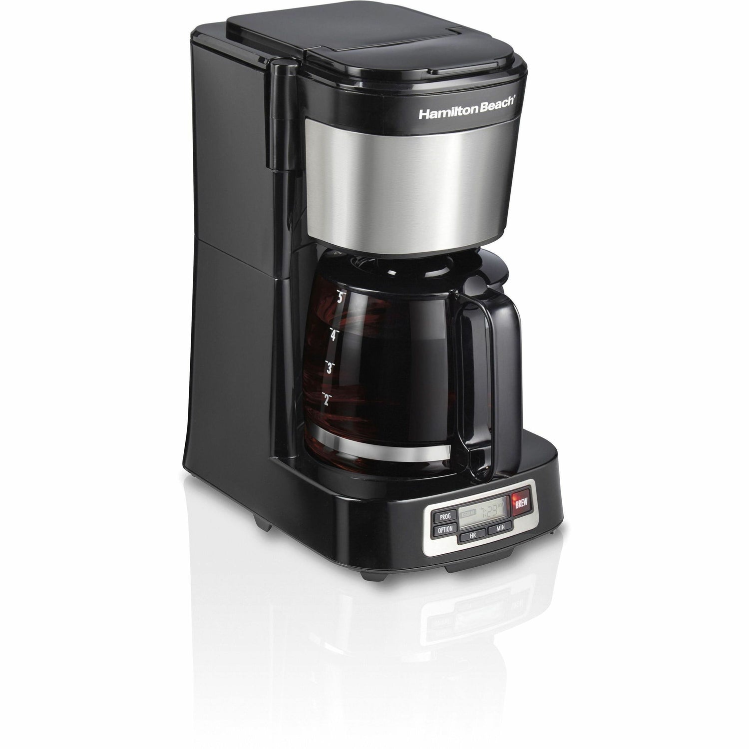 Hamilton Beach FrontFill 5 Cup Compact Coffee Maker with Programmable Clock & Glass Carafe