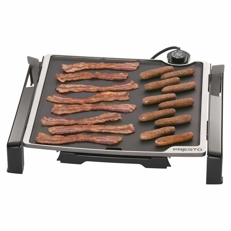 - Tilt-n-Fold griddle offers convenience and versatility for breakfast, lunch, and dinner.