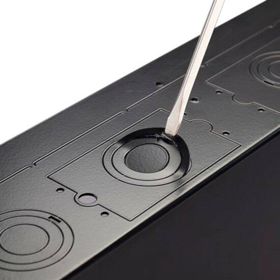 - Knockouts for single gang outlets and 1-1/4", 1", & �"conduit
