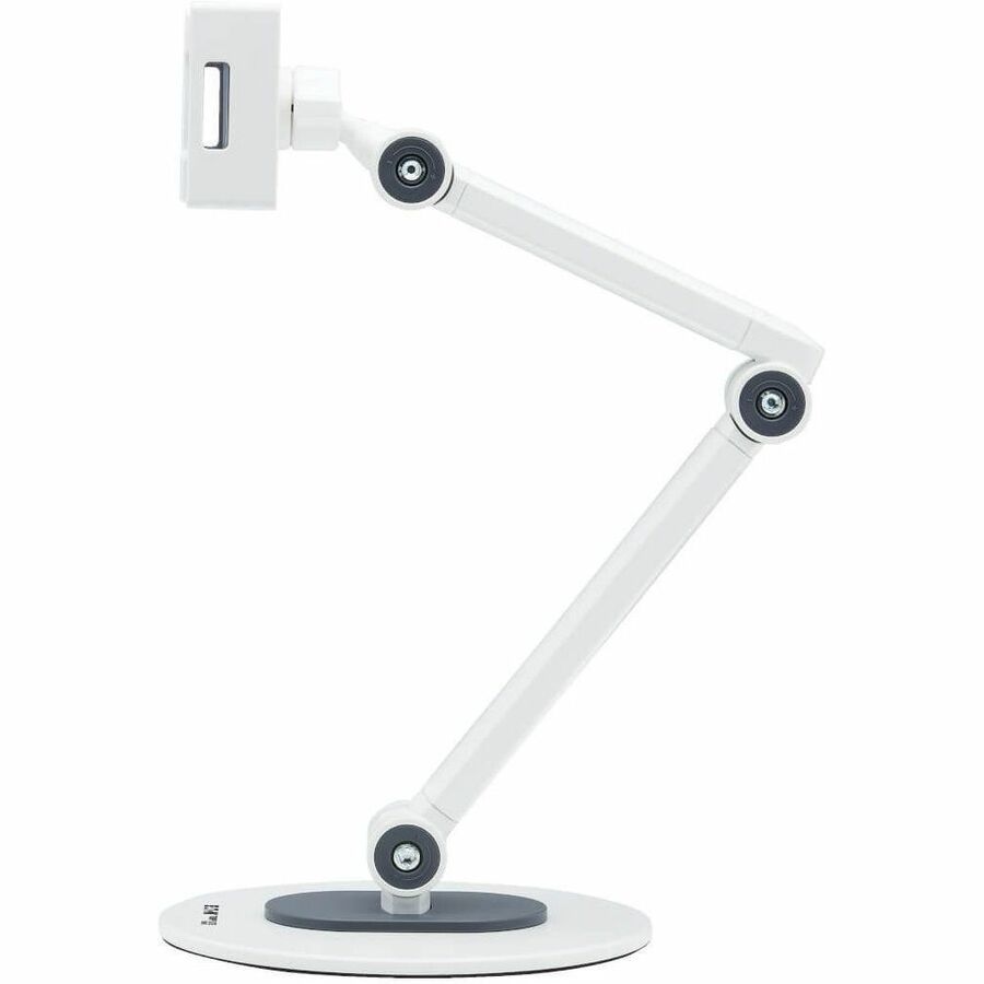 A handy tool for work-from-home spaces, this tablet mount lets you install your mobile device above your work surface to maximize space. The large round base is well balanced to securely hold the mount and mobile device in place. The tablet mounts to a flexible arm that tilts, swivels and allows you to adjust the height of your tablet from 4.7 to 18.5 inches. You can also rotate the tablet 180 degrees for viewing in either portrait or landscape mode.