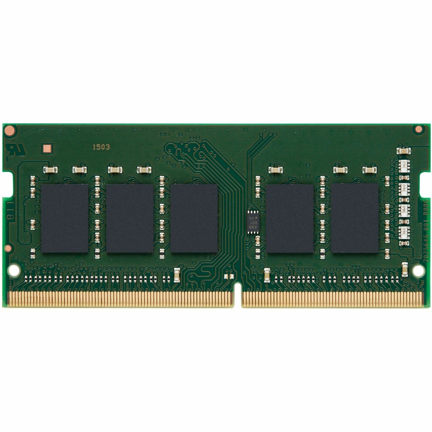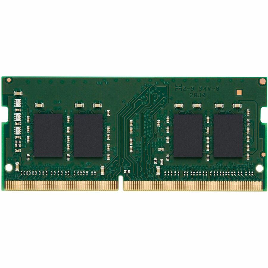 Kingston's KSM32SES8/8HE is a 1G x 72-bit (8GB) DDR4-3200 CL22 SDRAM (Synchronous DRAM) w/ parity, 1Rx8, ECC, memory module, based on nine 1G x 8-bit FBGA components. The SPD is programmed to JEDEC standard latency DDR4-3200 timing of 22-22-22 at 1.2V. Each 260-pin SODIMM uses gold contact fingers.