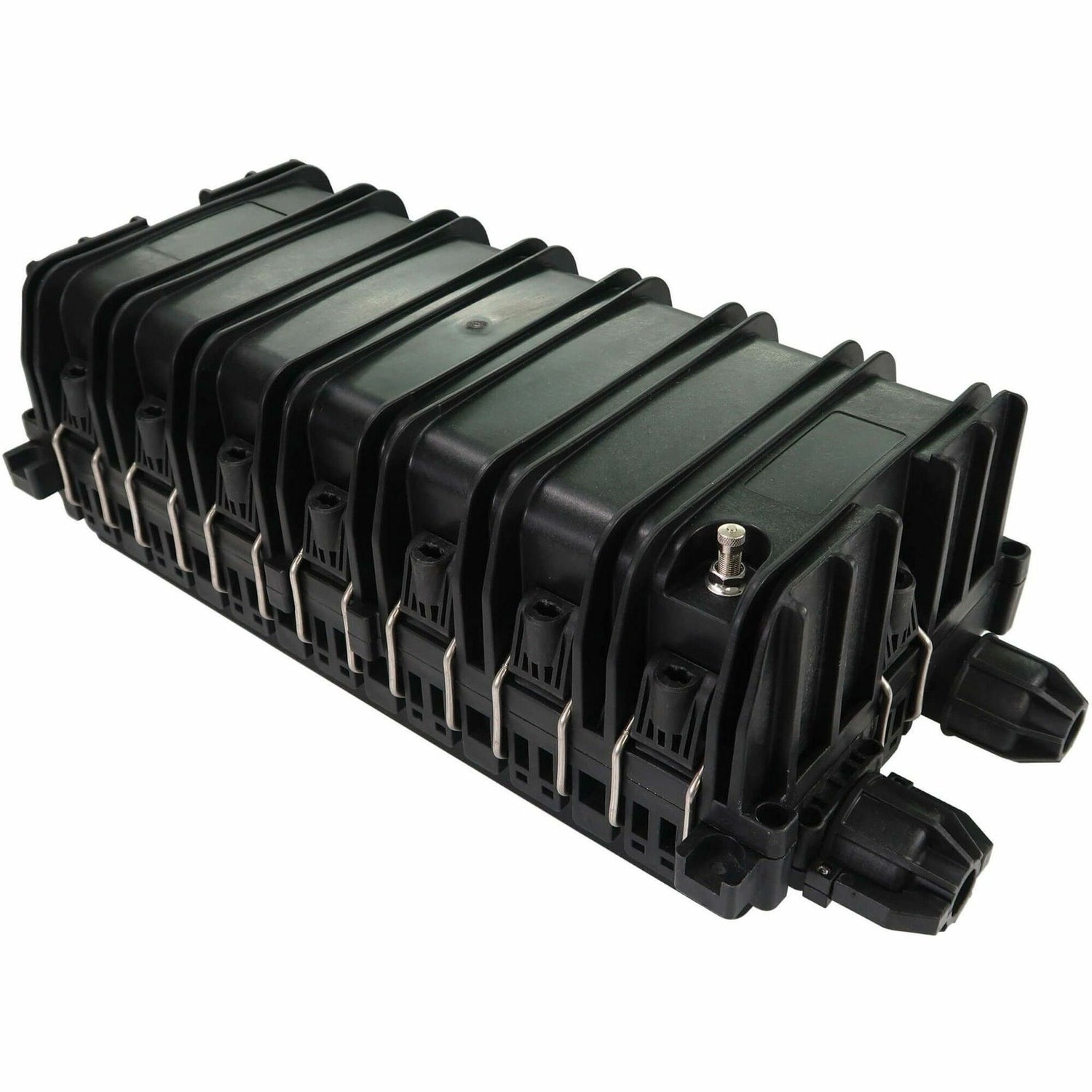 This fiber splicing horizontal enclosure comes with six splice trays that accommodate up to 48 unterminated cables each to give you more flexibility in adjusting cable lengths and connection types directly on-site. The N600H-0288-6 is ideal for singlemode and multimode fiber infrastructure in municipal broadband installations, including residential (Fiber to the Home or FTTH) and commercial (Fiber to the Premise or FTTP). This also includes underground fiber runs and those spanning utility poles.