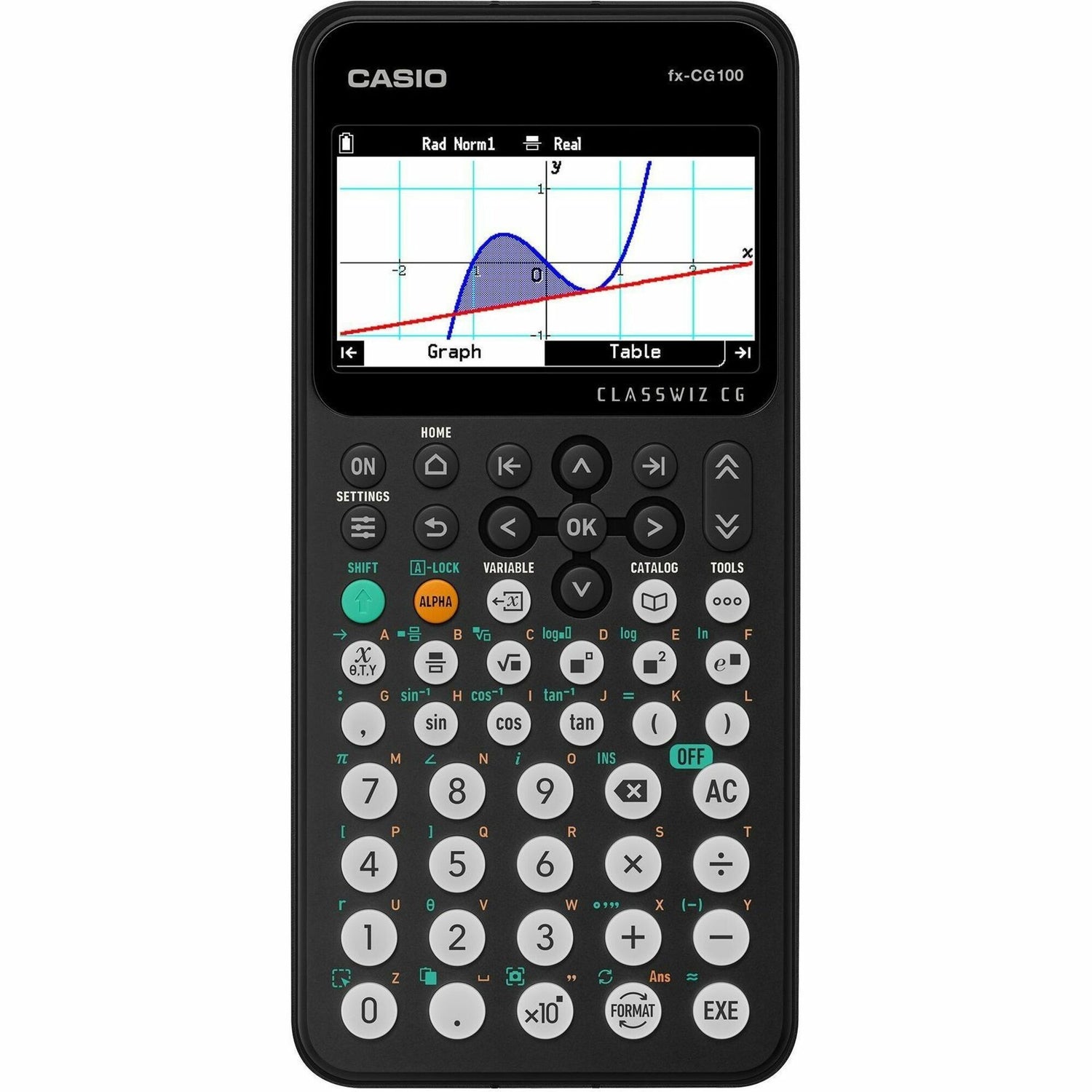 The fx-CG100 ClassWiz Color Graph is a cutting-edge handheld calculator designed to enhance student learning and exploration. Its intuitive, high-contrast user interface features a clean, tab-based design, replacing the traditional function key layout for improved navigation. The physical keypad is modeled after the scientific ClassWiz calculators, ensuring a seamless transition between scientific and graphing models for students. The CG100 features a robust catalog of mathematical functions with additional settings and adjustments located in the TOOLS menu. This model features an Exam Mode right from the HOME screen and is approved for all national testing scenarios. The CG100 comes with MicroPython programming capability. Please note, the CG100 does not include C.A.S. (symbolic algebraic computation).