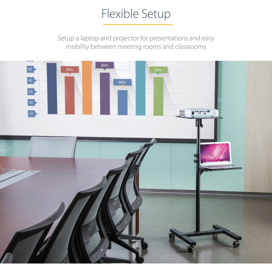 StarTech.com Mobile Projector and Laptop Stand/Cart, Heavy Duty Portable Projector Stand/Presentation Cart (22lb/shelf), Height Adjustable
