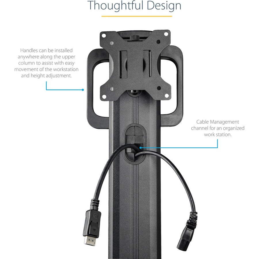 StarTech.com Mobile Standing Workstation with Monitor Mount, CPU/PC Holder, Height Adjustable Desktop Computer Cart, Standing Workstation