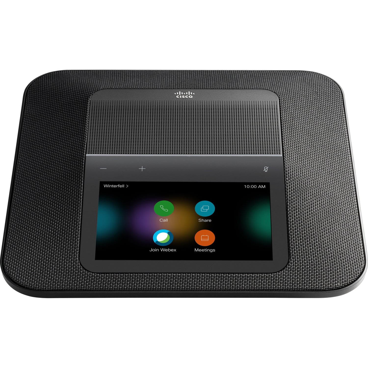 The Cisco Webex Room Phone is a conference phone designed for collaborative meetings. With a simple and familiar interface and high-quality audio you can use the power of the Webex platform to have an effective, productive call, meeting, and share experience. Enjoy a meeting solution that's simple and easy to use. Never enter a phone number or meeting code ever again. Now it's as simple as pushing one button to join through the touchscreen or Webex apps when proximity paired. You and your guest(s) can also share content locally or inmeeting using wireless and wired options.