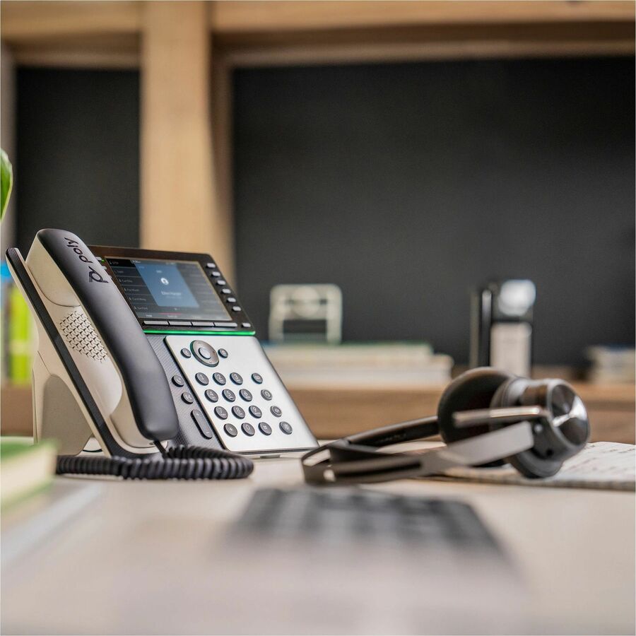 Enjoy better connectivity with two high-speed GigE PoE Ethernet ports for the LAN connection to your IP phone with a passthrough connection to your PC. And a Poly headset for your workstyle: USB, RJ9, or Electronic Hook Switch.
