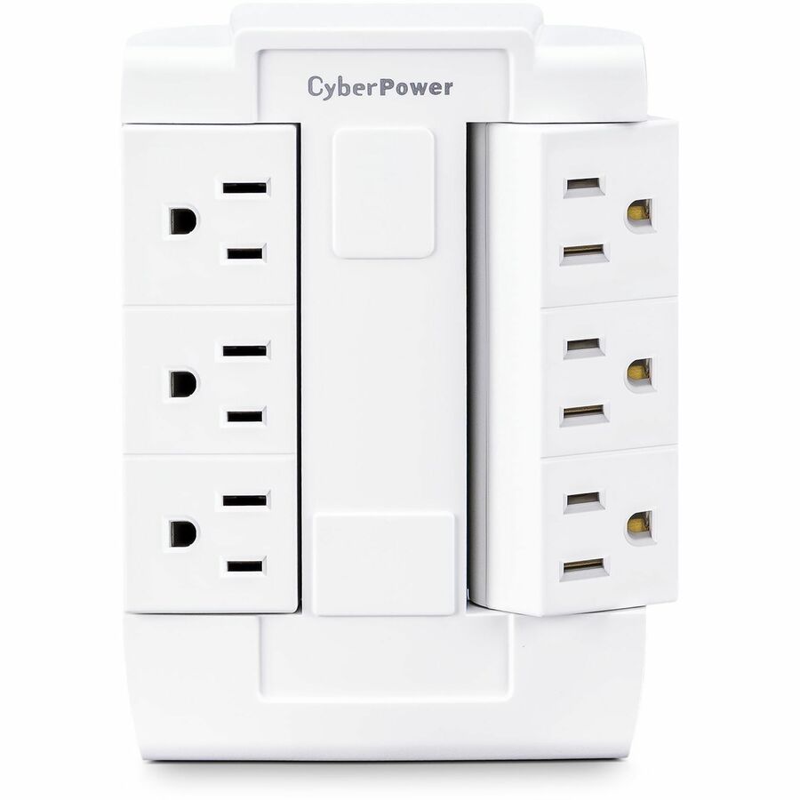 The GT600P Swivel Wall Tap from CyberPower expands two grounded outlets into six grounded outlets and rotates for easy access. The Swivel Wall Tap features six standard spaced outlets in two columns of three outlets for versatile arrangement of plugs. Conveniently designed to fit behind furniture and appliances, this wall tap is ideal for small electronics, chargers, and household fixtures such as lamps.