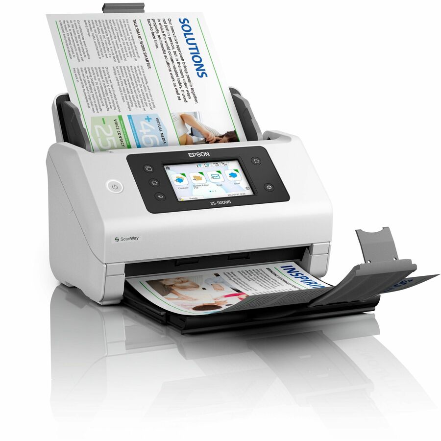 The DS-900WN is designed to be the perfect edge device for pulling digitized scan data into your document management solutions. EdgeLink™ scanners from Epson have built-in integrations with supported third-party software platforms. This allows end users to access their applications directly through the scanner's large 4.3" color touchscreen. For smaller businesses and organizations, Epson's powerful Document Capture Pro software is included, with features such as scanning to searchable PDF files. With accurate, high-quality scans at speeds up to 70 ppm/140 ipmand a 100-page Auto Document Feeder (ADF), the DS-900WN is engineered to bring speed, reliability and ease of use to your workflows. The scanner also supports ScanWay™ PC-free scanning, allowing you to scan to a USB flash drive, email, network foldersor popular cloud serviceswithout the need to install any software. For implementations needing advanced administration, Epson offers a robust suite of optional solutions for the scanner that facilitate centralized management, reporting, and server-based capture and authentication (including Active Directory). Make document management work for you with the exceptional DS-900WN.