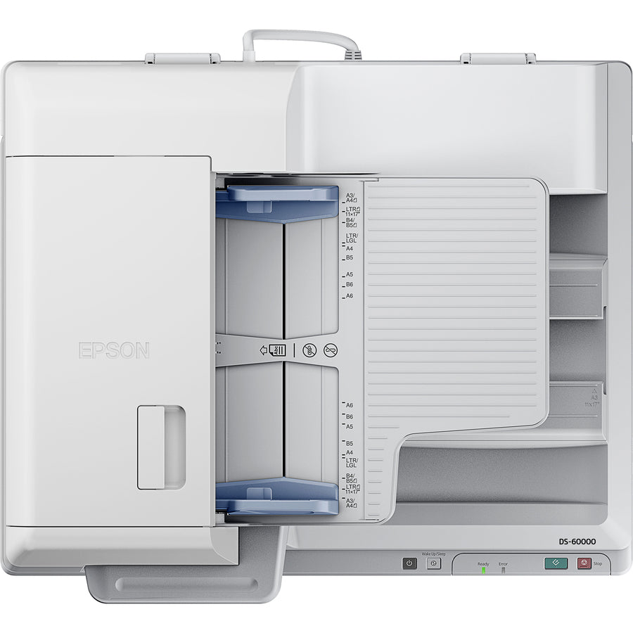 Now, your workgroup can take advantage of high-speed 2-sided document imaging, without breaking the bottom line. The fast, affordable WorkForce DS-60000 delivers remarkable scans from 2.7" x 4.7" up to 11.7" x 100" , quickly scanning 2-sided documents in just one pass. Use the 200-sheet Automatic Document Feeder (ADF) to scan stacks of 1- or 2-sided, large-size documents. Or, use the 11.7" x 17" flatbed to scan drawings or maps, hard-bound books or other odd-sized items. The WorkForce DS-60000 blazes through each task at speeds up to 40 ppm / 80 ipm1. And, it consistently delivers vivid colors and crisp, sharp text thanks to its 4 line CCD sensor (RGB and Black). It even makes it easy to dropout selected colors or choose a color and convert it to black. With this versatile performer, you get high-volume, precision, large-format document imaging. Plus, with productivity software included and the optional networking module, each member of your team can access high performance scanning for critical project needs.