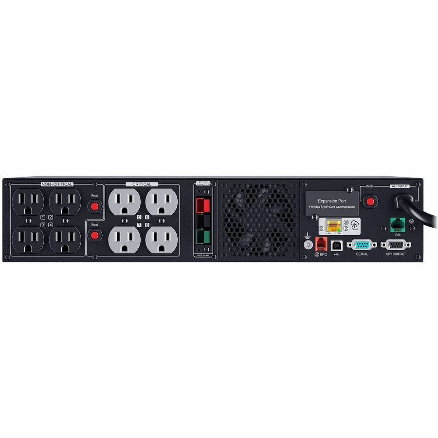 This model accepts the BP48VP2U02 Extended Battery Module (EBM) for expanded runtime during power outages and the RMCARD205 network management card for remote management and control via a standard web browser or network management system. Built-in cloud monitoring.