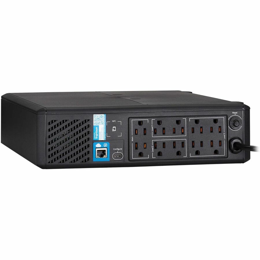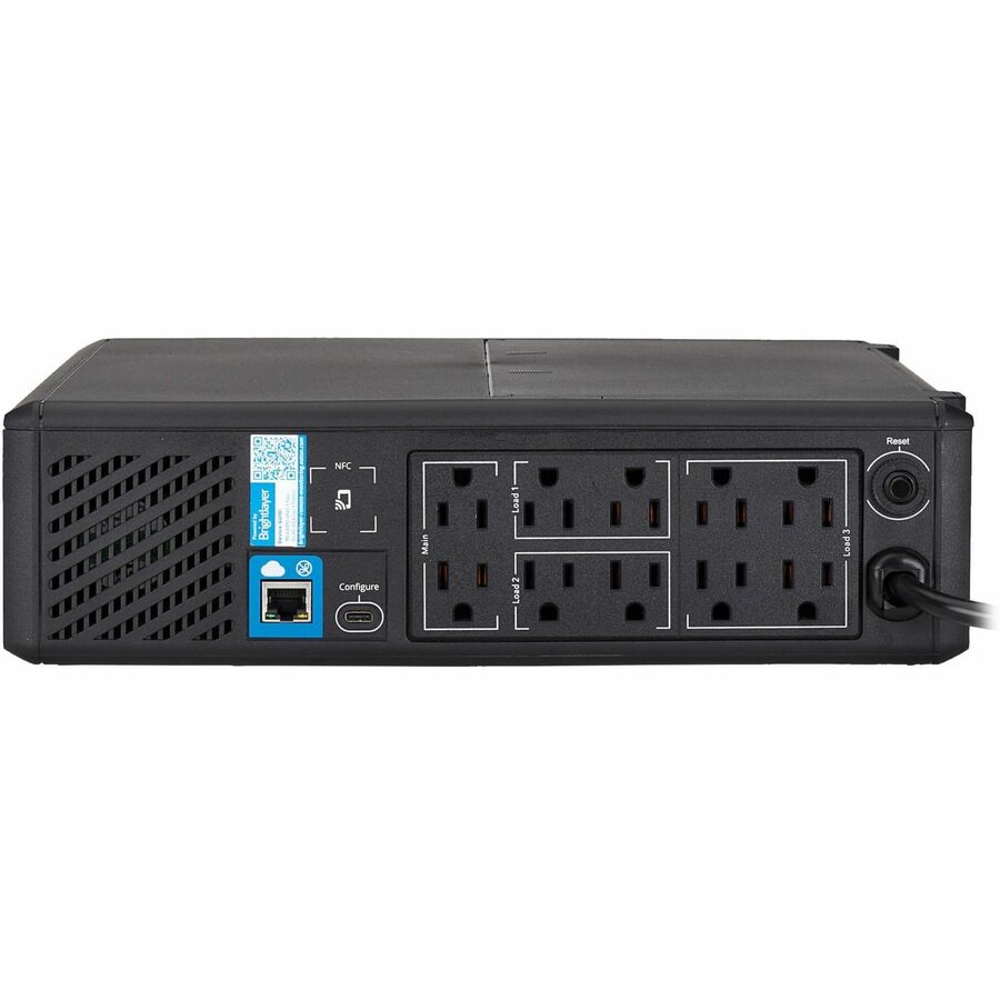 Ten 5-15R outlets provide battery backup and surge protection for your security camera, router, network switch, server and other sensitive electronic devices. Remote monitoring allows individual control of three switchable load banks that can be powered on/off or cycled remotely, saving you an expensive and time-consuming on-site visit.