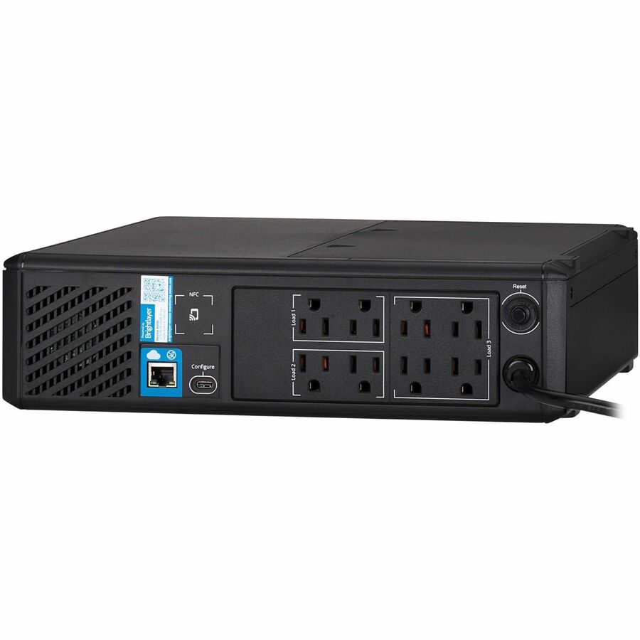 Eight 5-15R outlets provide battery backup and surge protection for your security camera, router, network switch, server and other sensitive electronic devices. Remote monitoring allows individual control of three switchable load banks that can be powered on/off or cycled remotely, saving you an expensive and time-consuming on-site visit.