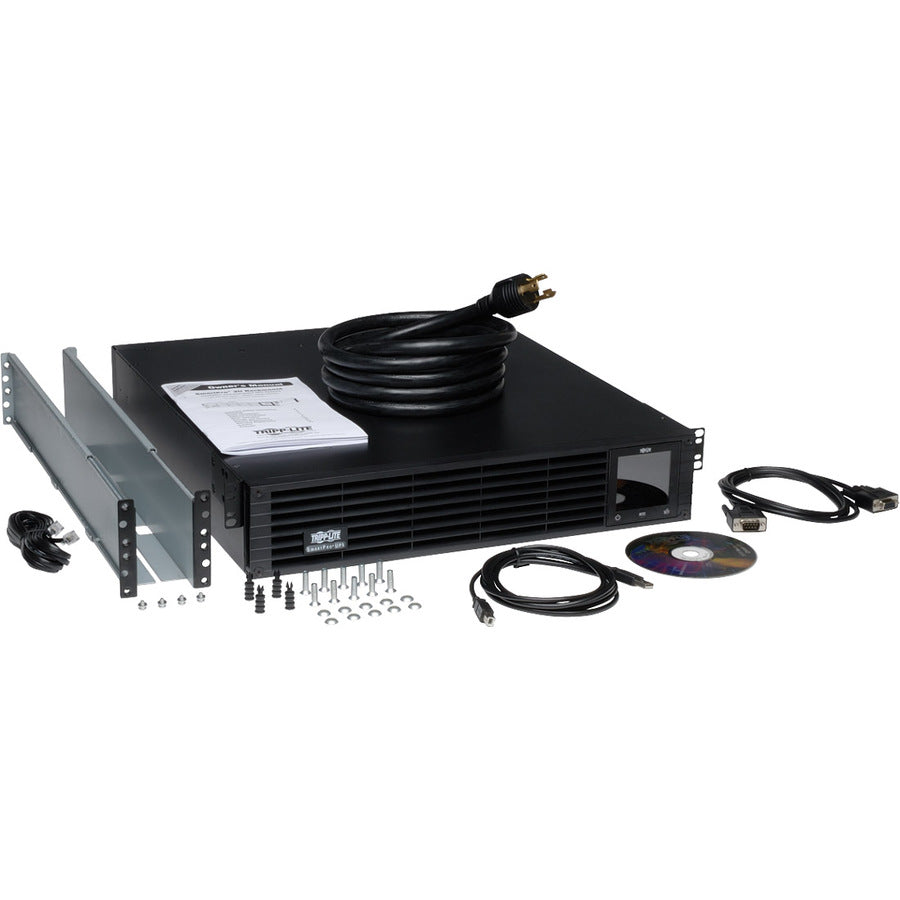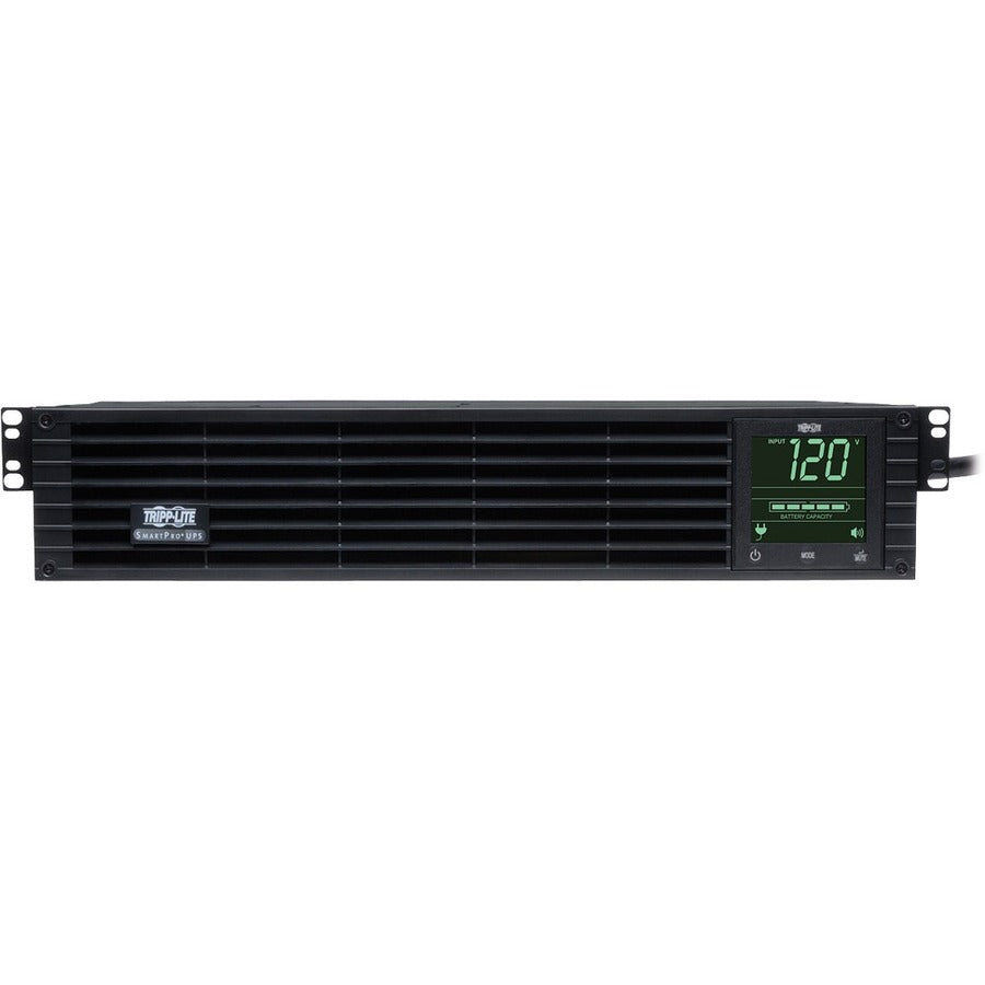 Tripp Lite SmartPro Line Interactive UPS with enhanced LCD interface offers network-grade power protection for critical server, network and telecommunications equipment. Line Interactive Uninterruptible Power Supply (UPS) with built-in Auto-Voltage Regulation (AVR) actively corrects brownouts and overvoltages back to usable levels while maintaining a full battery charge in case of power failure. Tripp Lite's unique configuration excels in exceptionally poor-power environments with two separate levels of voltage boost to correct both slight undervoltages and severe brownout conditions. Interactive LCD interface reports UPS operating mode, detailed UPS and site-power data, plus enables a variety of UPS setup and configuration options. Super-fast switchover from line to battery power occurs within milliseconds to maintain operation of connected equipment without interruption or reboot. 98% line-mode efficiency offers reduced heat emissions and operating costs. Network management interfaces support communications via USB, RS-232 and slot for network management card options. HID-compliant USB port enables integration with built-in power management and auto shutdown features of Windows and Mac OS X. Network communications ports enable detailed monitoring of equipment load levels, self-test data and utility power conditions. PowerAlert UPS monitoring and auto shutdown software is available via free download. Switched output load banks enable scheduled and real-time remote reboot and load shedding of select outlets. Emergency Power Off (EPO) interface. LCD display panel easily rotates for viewing in rackmount or tower configurations. Audible alarm with push-button momentary alarm-cancel and silent-mode configuration options. Programmable self-test. Field-replaceable, hot-swappable battery modules.