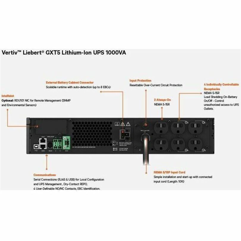 Vertiv Liebert GXT5 Lithium-Ion Online UPS 1000VA/1000W 120V Tower/Rack UPS