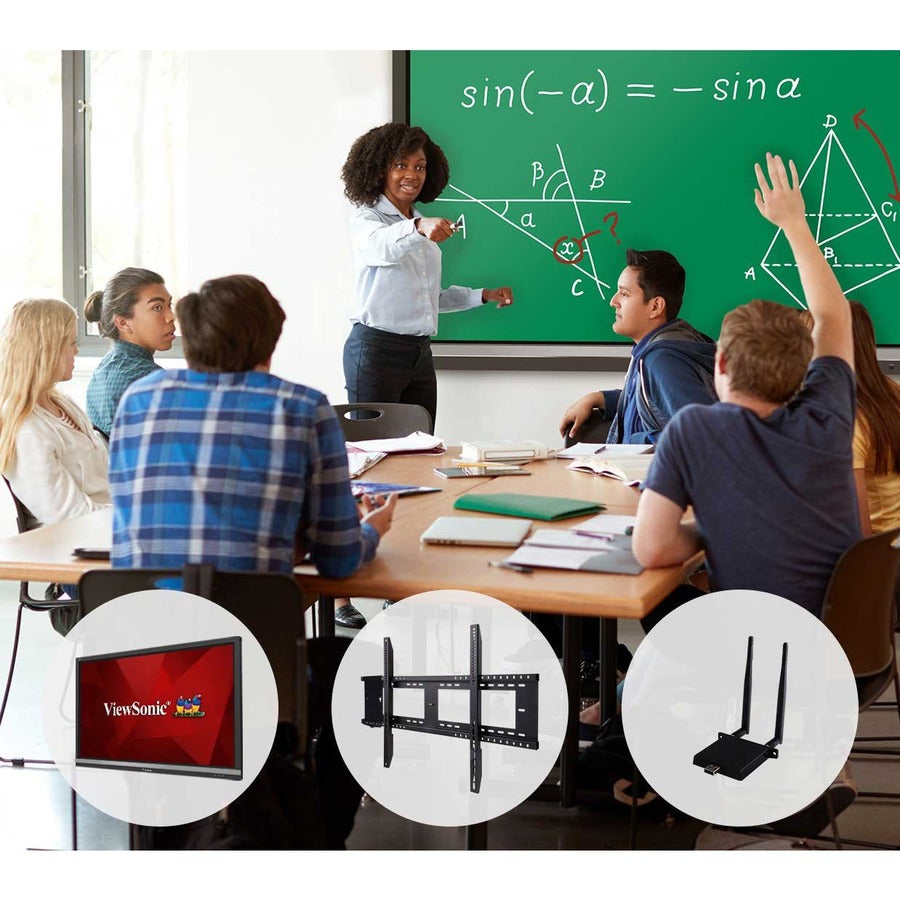 Ideal for education environments, this all-in-one ViewBoard Bundle includes a 65" ViewBoard IFP6550 4K interactive flat panel, a wireless AC adapter, and a WMK-047-2 wall mount.