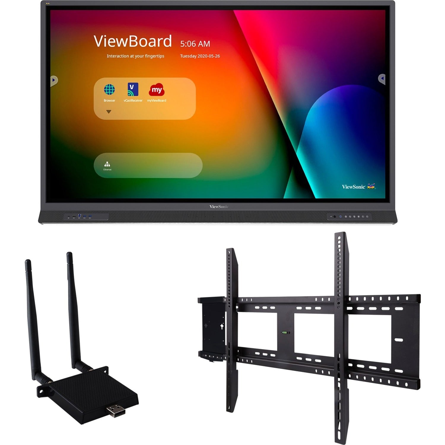 Ideal for education environments, this all-in-one ViewBoard Bundle includes a 65" ViewBoard IFP6552 4K interactive flat panel, a wireless AC adapter, and a WMK-047-2 wall mount.