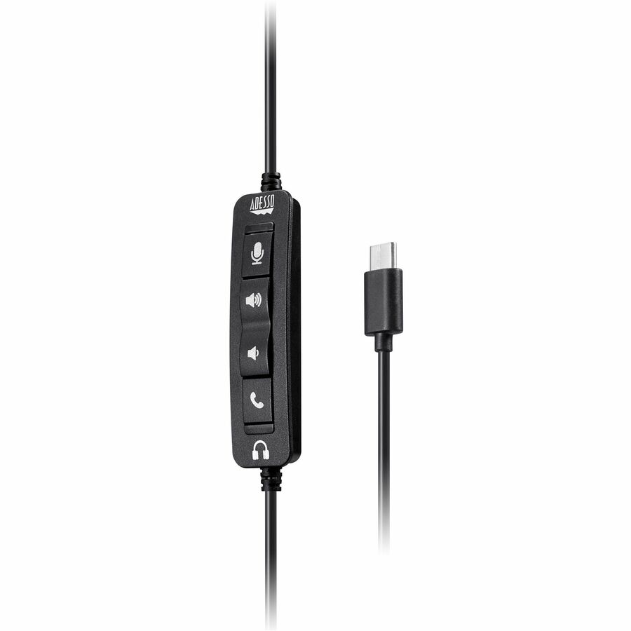 Adesso Headset with Push to talk, Volume +/-, Answer/End Call Controls - Stereo - USB Type C - Wired - 2.2 Kilo Ohm - 20 Hz to 20 kHz - Over-the-ear, Over-the-head - Binaural - Supra-aural - 6 ft Cable - Omni-directional MicrophoneTAA Compliant