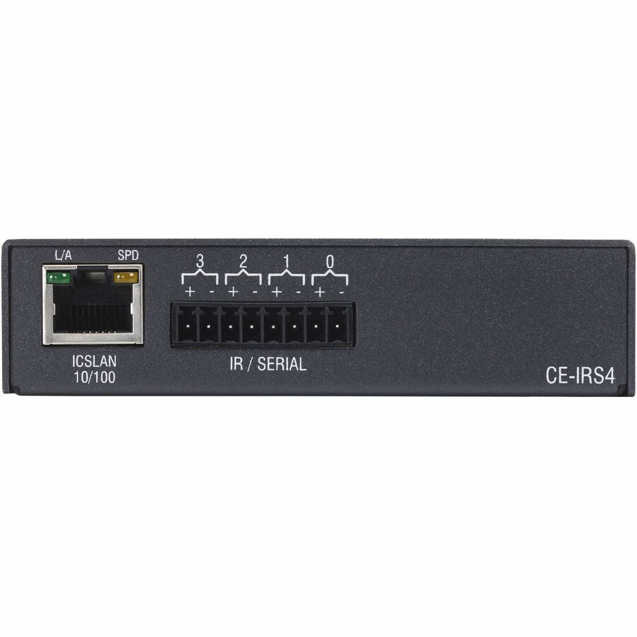 The AMX CE-IRS4, Universal Control Extender with 4 IR/S Ports, delivers AMX-quality hardware control to any system that supports IP connectivity. An open control API makes it simple to integrate these boxes with third-party control systems or apps, and the integrated web interface enables configuration without specialized applications. HControl enables them to be auto-discovered and integrated seamlessly with next generation AMX control processors and other HARMAN Professional products.
