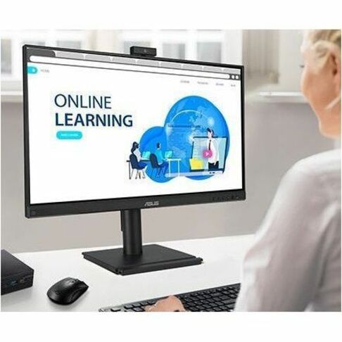 ASUS BE249QFK Video Conferencing Monitor - 24 inch (23.8 inch viewable), Full HD, IPS, 100Hz, Frameless, Full HD Webcam, Mic Array, Stereo Speakers, Height Adjustable, Ergonomic Design, HDMI, Eye Care, Low Blue Light, Flicker Free, Wall Mountable, Sustainability