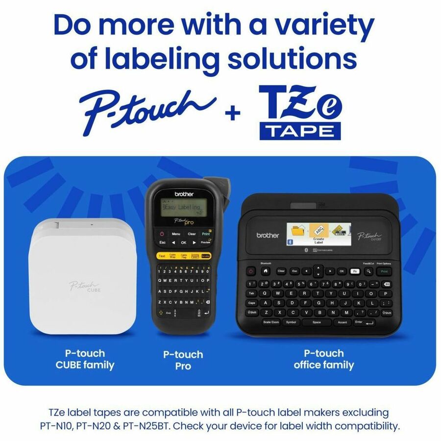 - Pair them with P-touch Label Makers for long-lasting labeling: Use Brother P-touch TZe Laminated Label Tapes with a variety of P-touch Label Makers to easily create custom messages that stick.