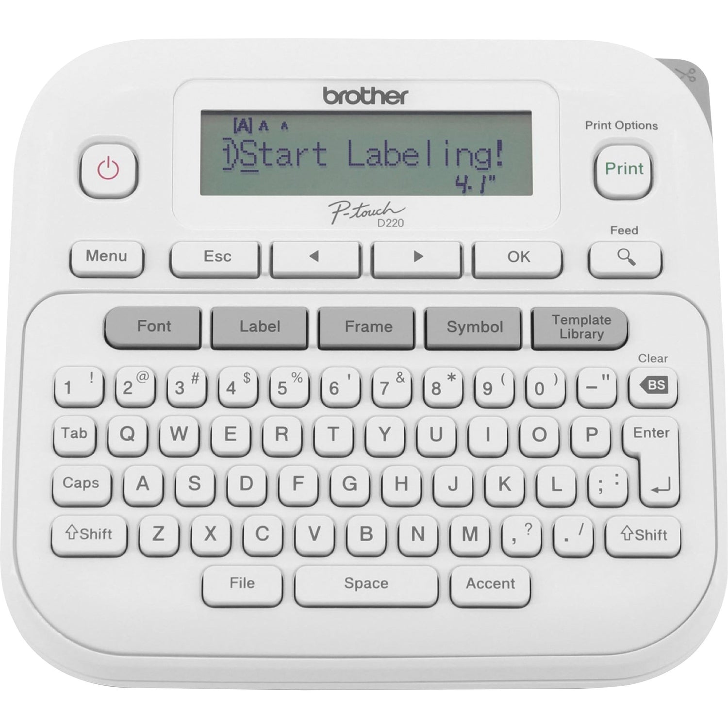 - Memory function stores up to 30 frequently used labels.