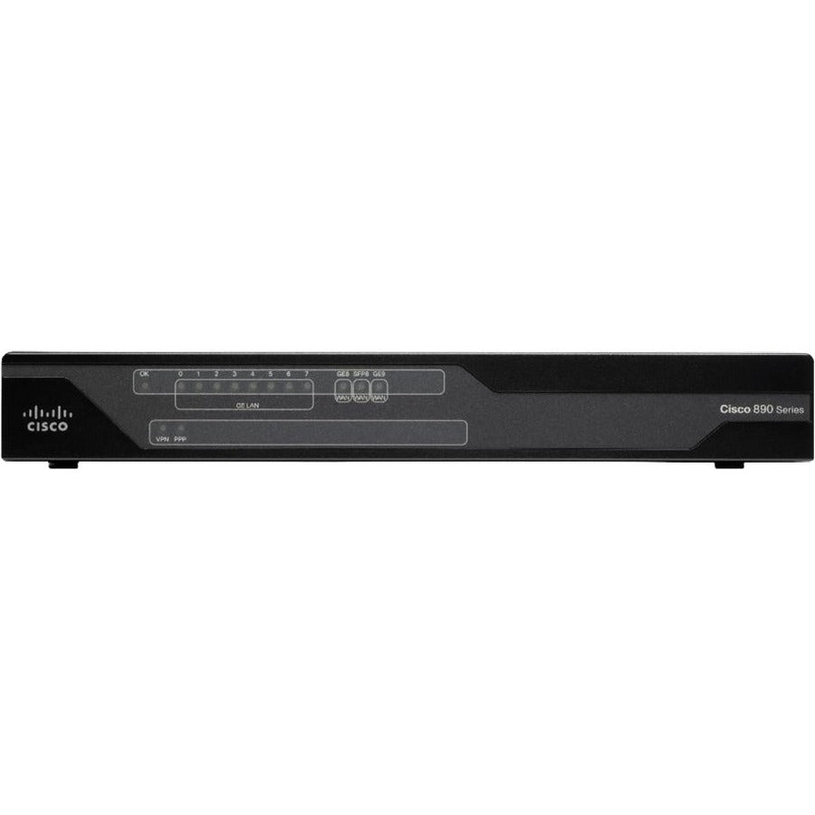 Cisco 890 Series Routers deliver high performance with integrated security and threat defense. Network security has become a fundamental building block of any network, and Cisco routers play an important role in embedding security at the customer's access edge. Cisco recognizes this requirement, so Cisco 890 Series Routers are equipped with security hardware acceleration and Cisco IOS Software (by default, a universal image with Advanced IP Services feature license). This Cisco IOS Software feature set facilitates hardware-based IPsec encryption on the motherboard and provides a robust array of security capabilities such as Cisco IOS Firewall, Cisco ScanSafe Connector, IPS support, IPsec VPNs (DES, 3DES, and AES), SSL VPN, tunnel-less Group Encrypted Transport VPN, DMVPN, Easy VPN server and client support, Secure Shell (SSH) Protocol Version 2.0, and Simple Network Management Protocol (SNMP) in one solution set.