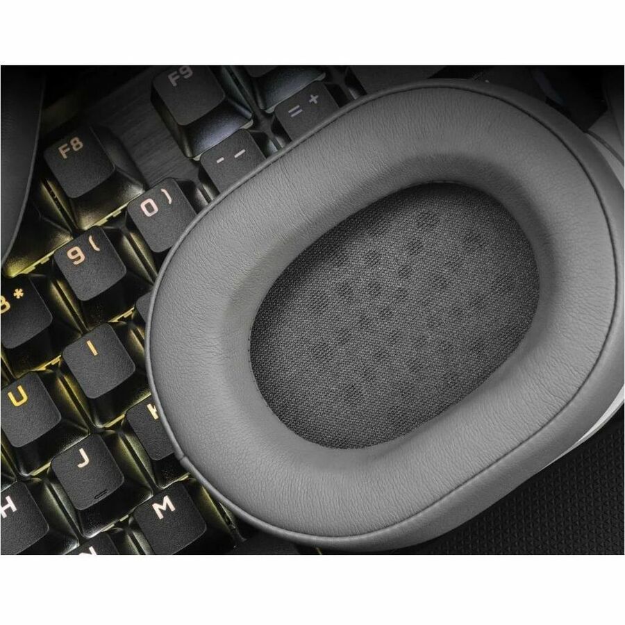 The CORSAIR HS55 STEREO Gaming Headset delivers essential all-day comfort and sound quality with memory foam leatherette ear pads, lightweight construction, and custom-tuned 50mm neodymium audio drivers.