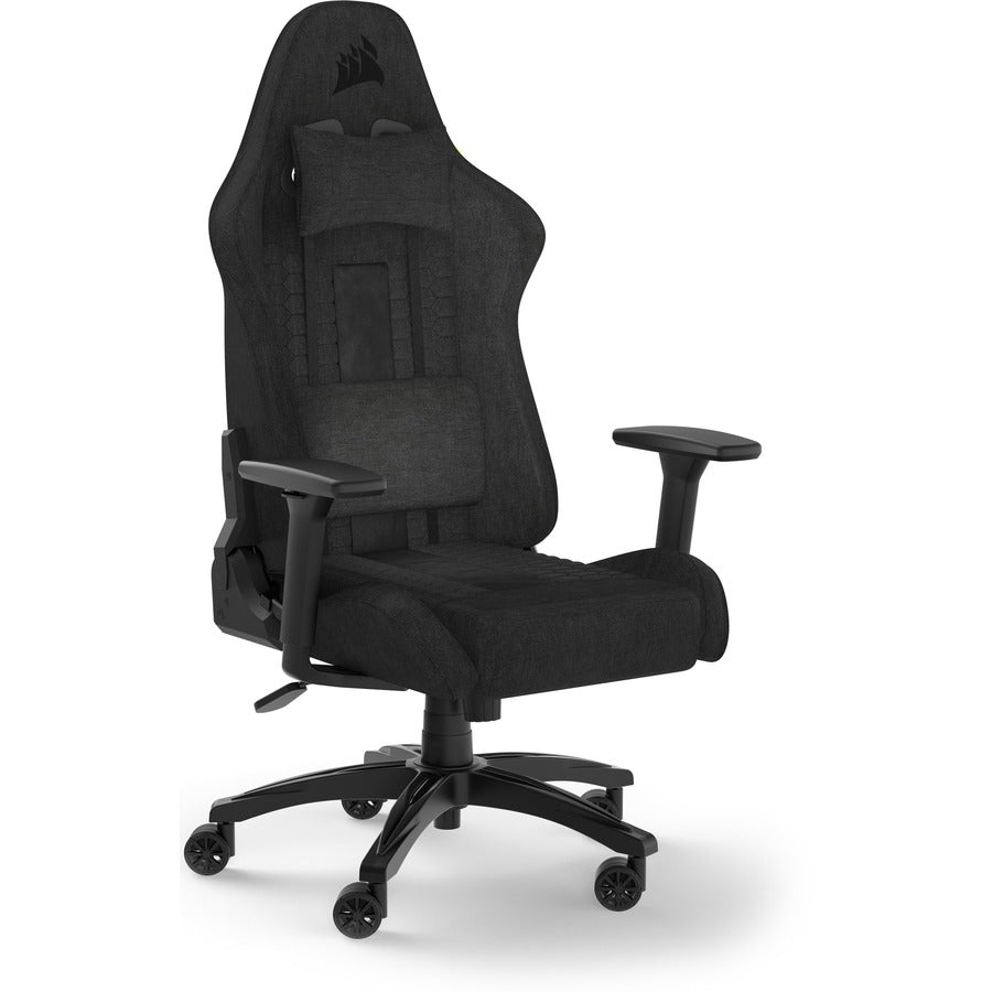 Recline into comfort whether playing or working with the CORSAIR TC100 RELAXED Gaming Chair - Fabric, featuring a racing-inspired design with a wider seat surface. The chair's plush exterior lets you play in cool comfort. With both an included adjustable lumbar support pillow and detachable memory foam neck pillow, you have all the support you need while gaming. The seat back reclines from 90° to 150°, so you can lean way back after a hard-won victory. After setting the chair up for your exact needs with a class 4 gas lift with 100mm height range and adjustable armrests, the TC100 RELAXED makes it easy to sit back and game on.