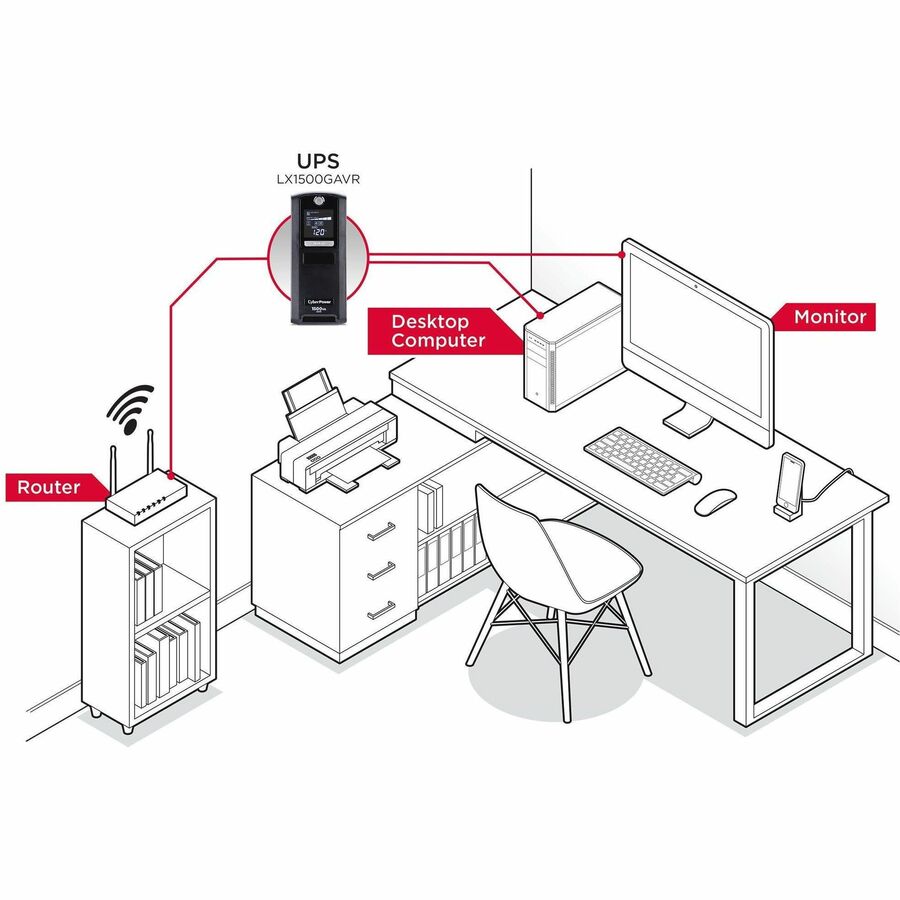A compact UPS with line interactive topology, the CyberPower AVRG750U provides battery backup (using simulated sine wave output) and surge protection for desktop computers, workstations, networking devices, and home entertainment systems. The AVRG750U uses Automatic Voltage Regulation (AVR) to correct minor power fluctuations without switching to battery power, which extends battery life. AVR is essential in areas where power fluctuations occur frequently. The AVRG750U comes with a three-year warranty (including coverage of batteries) and a ,150,000 Connected Equipment Guarantee.