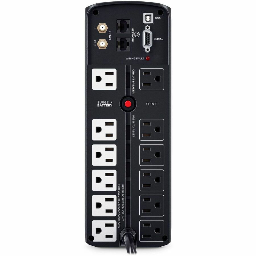 - Outlets: 12 (6 surge, 6 surge + battery backup)