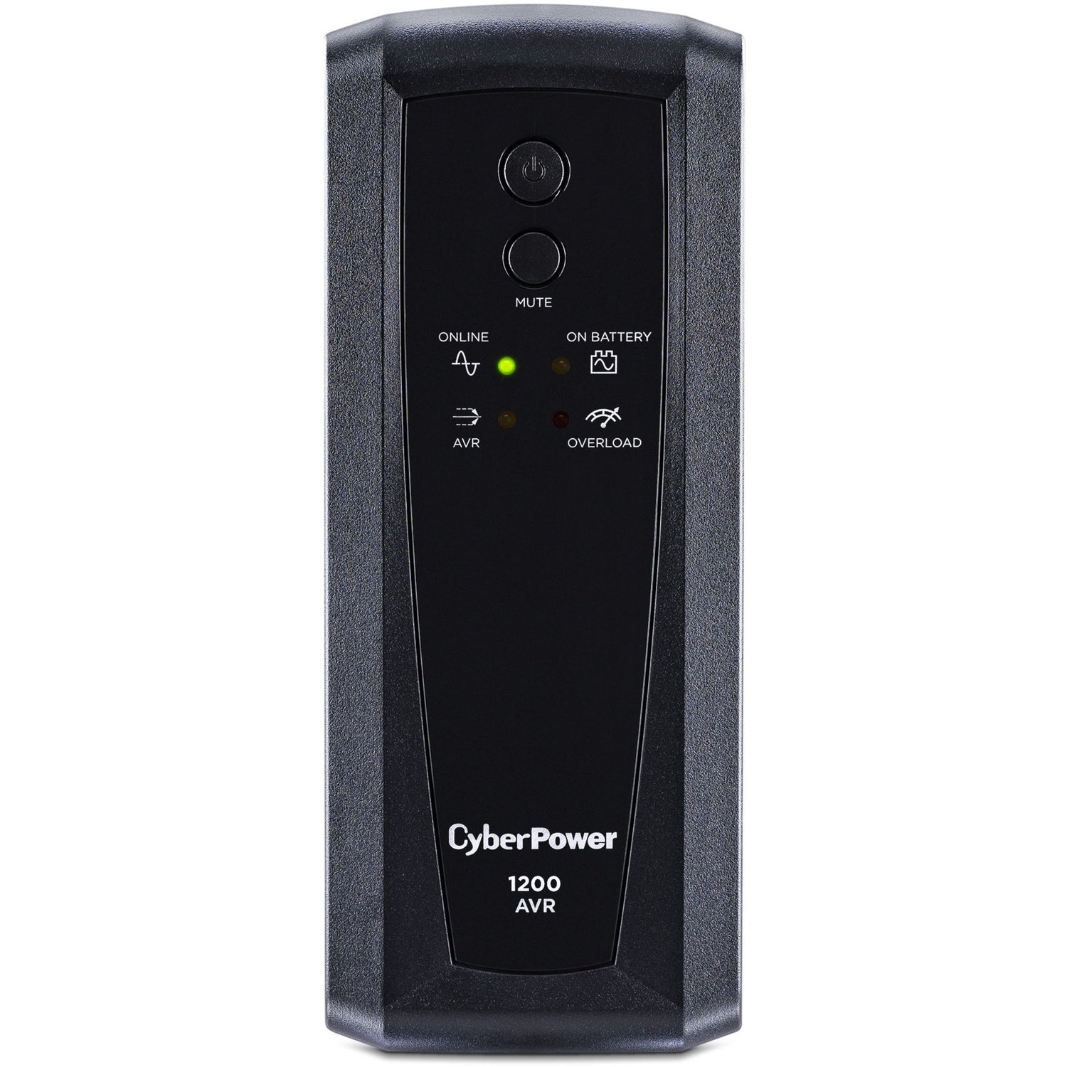 The CyberPower Systems CP1200AVR UPS offers advanced power protection in a sleek and rugged tower. Automatic Voltage Regulation (AVR) ensures that all your electronics are receiving clean and stable AC power. Designed for mid-level to upper-level computer systems, the CP1200AVR guards against surges/spikes, and also offers battery backup in the event of brownouts or total power loss. If your PC is unattended, PowerPanel PE Power Management software will automatically save and close open files and also shutdown the computer system in an intelligent and orderly manner. The CP1200AVR also has full dataline protection: RJ11/RJ45 (phone, fax, Ethernet, network, DSL) and RG-6 coax (DSS, cable modem, satellite, cable TV). The convenient tower designs allows for placement on the floor, inside a workstation cabinet, or directly on the desktop. Surge-Only outlets are perfect for the addition of peripherals such as monitors, printers, scanners, iPods, or CD/DVD players.