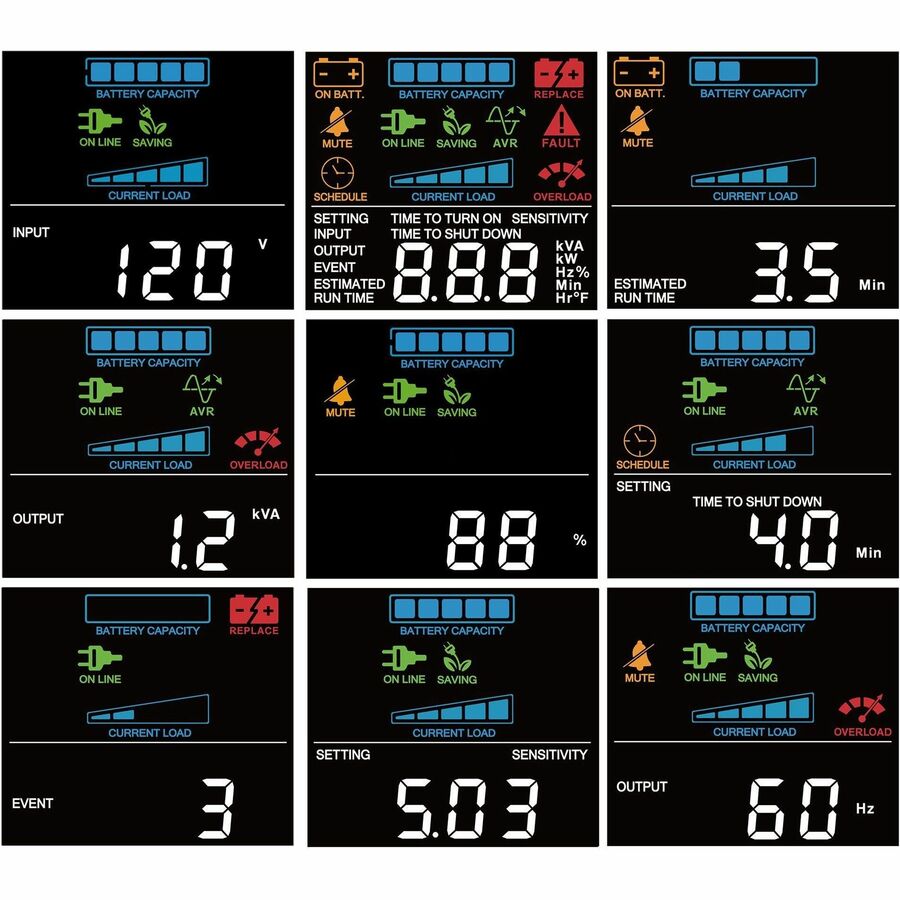 The CP1500PFCLCD features an advanced multifunction control panel with a color LCD to quickly confirm status and alerts at-a-glance. The screen tilts for easy viewing when the UPS is placed in a low position such as under a desk. Two USB charge ports (one Type-A and one Type-C) power portable devices such as mobile phones and tablets, even during a utility power failure.