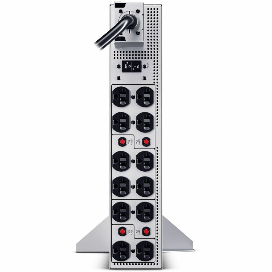 The OL5KSTF has a capacity of 5,000 VA / 5,000 Watts. It features twelve (12) NEMA 5-20R receptacles that can support output to NEMA 5-15P and 5-20P plug power cords.