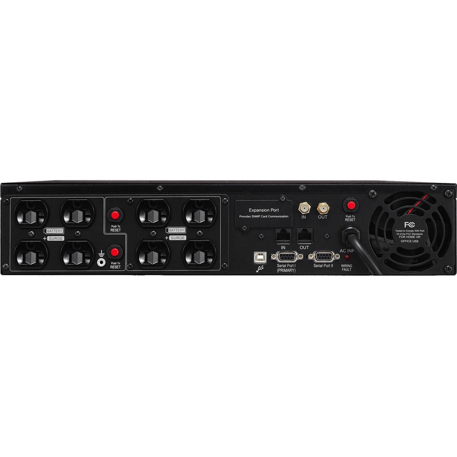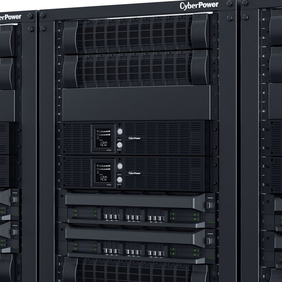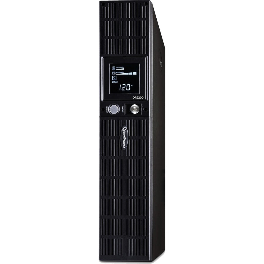 A rack/tower convertible UPS with line interactive topology, the CyberPower Smart App LCD OR2200LCDRT2U provides battery backup (using simulated sine wave output) and surge protection for office servers, corporate and department networks, workgroup servers, workstations, network devices, and telecom installations without active PFC power supplies. The OR2200LCDRT2U uses Automatic Voltage Regulation (AVR) to correct minor power fluctuations without switching to battery power, which extends battery life. AVR is essential in areas where power fluctuations occur frequently. The OR2200LCDRT2U comes with a three-year warranty and a ,300,000 Connected Equipment Guarantee.