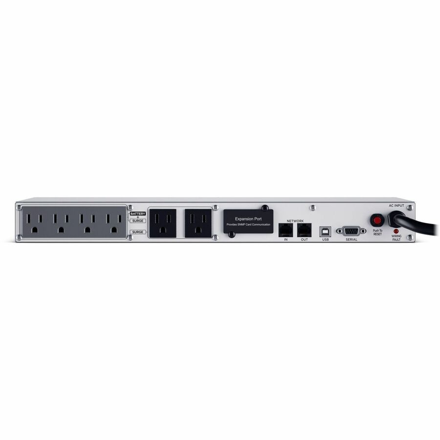 A rackmount UPS with line interactive topology, the CyberPower Smart App LCD OR500LCDRM1U provides battery backup (using simulated sine wave output) and surge protection for department servers, workgroup servers, workstations, network devices, and telecom installations without active PFC power supplies. The OR500LCDRM1U uses Automatic Voltage Regulation (AVR) to correct minor power fluctuations without switching to battery power, which extends battery life. AVR is essential in areas where power fluctuations occur frequently. The OR500LCDRM1U comes with a three-year warranty and a ,300,000 Connected Equipment Guarantee.