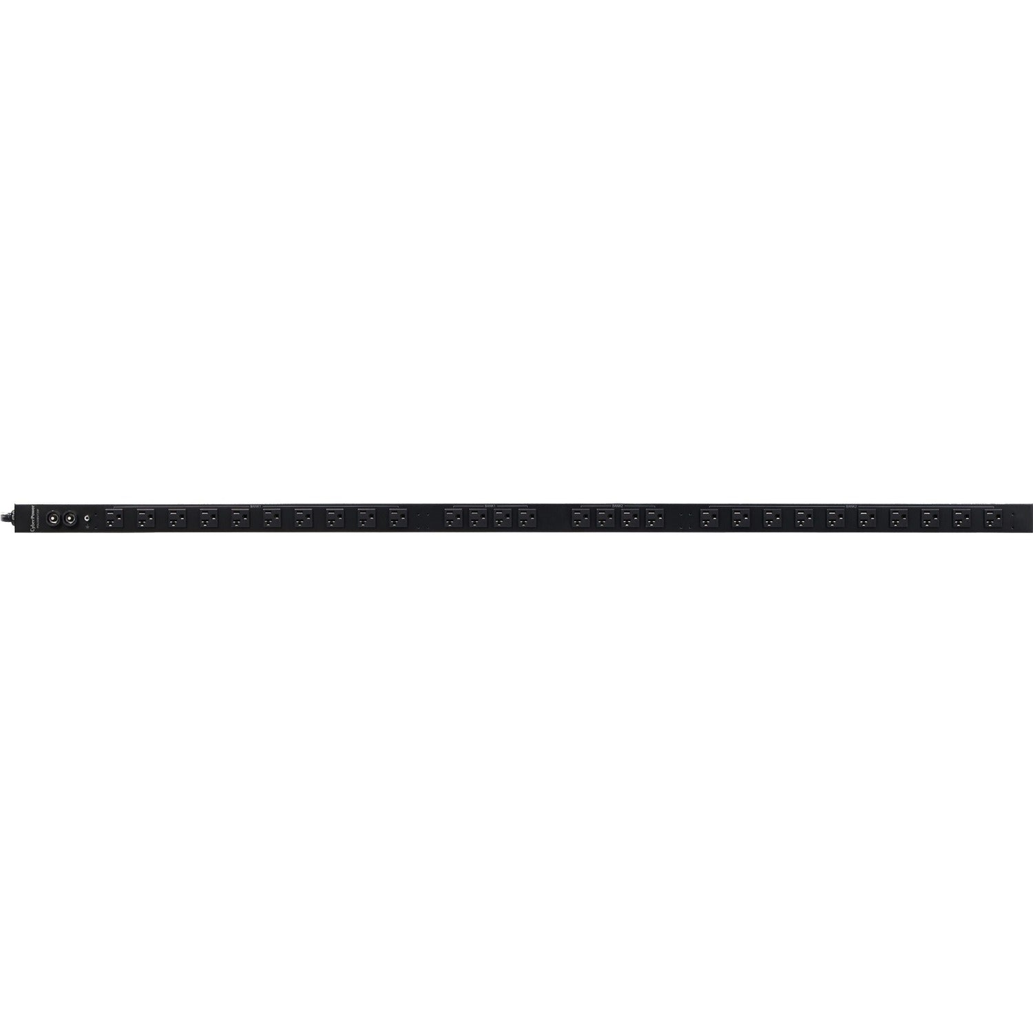 The CyberPower 28-outlet (28 Front) 0U vertical rack mount basic power distribution unit (PDU30BVT28F) provides 120V 30A output. It distributes power to 28 NEMA 5-20R receptacles from a single NEMA L5-30P twist lock plug, with unfiltered electrical pass-through. Designed for datacenters and other electrically demanding applications, this unit has a rugged, industrial-grade metal housing and a 10-foot AC power cord. It supports vertical, horizontal and wall mount installation, includes a cord retention tray and is ETL/RoHS certified. A lifetime warranty ensures that this PDU is free of defects in design, assembly, material or workmanship.