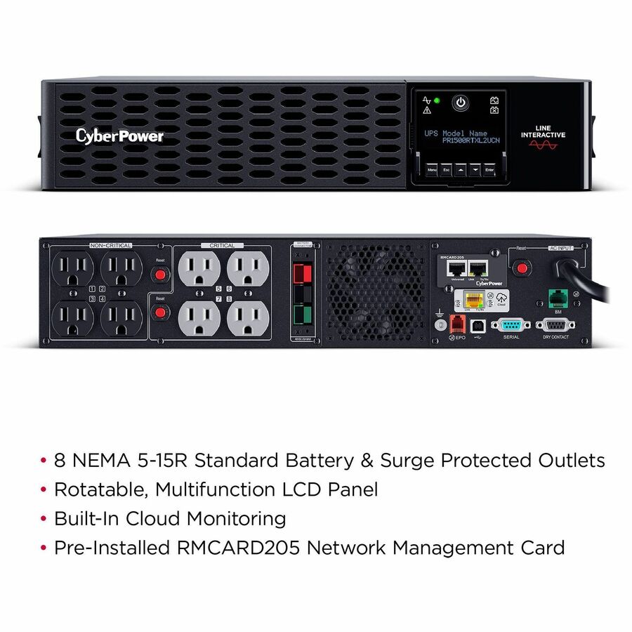 The PR1500RTXL2UCN is a Smart App Sinewave rack/tower convertible UPS with line-interactive topology, surge protection, and battery backup. CyberPower's Smart App Sinewave series has sine wave output to eliminate power gaps that can be detected by sensitive equipment and cause unexpected shutdowns.