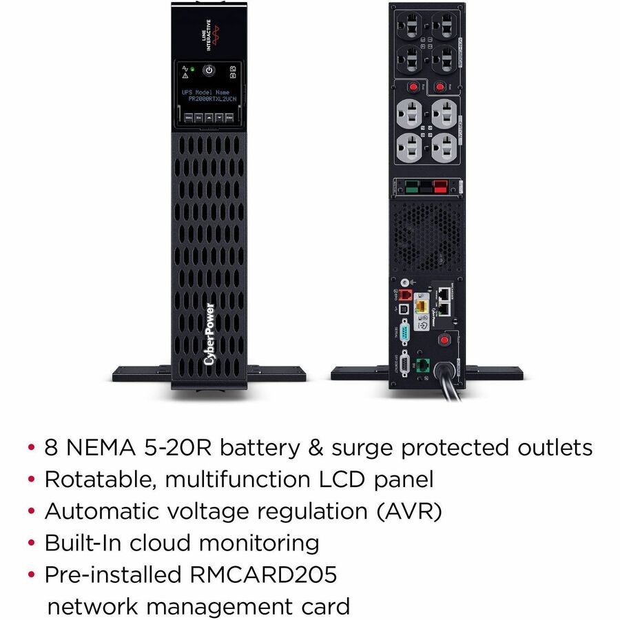 The PR2000RTXL2UCN is a Smart App Sinewave rack/tower convertible UPS with line-interactive topology, surge protection, and battery backup. CyberPower's Smart App Sinewave series has sine wave output to eliminate power gaps that can be detected by sensitive equipment and cause unexpected shutdowns.