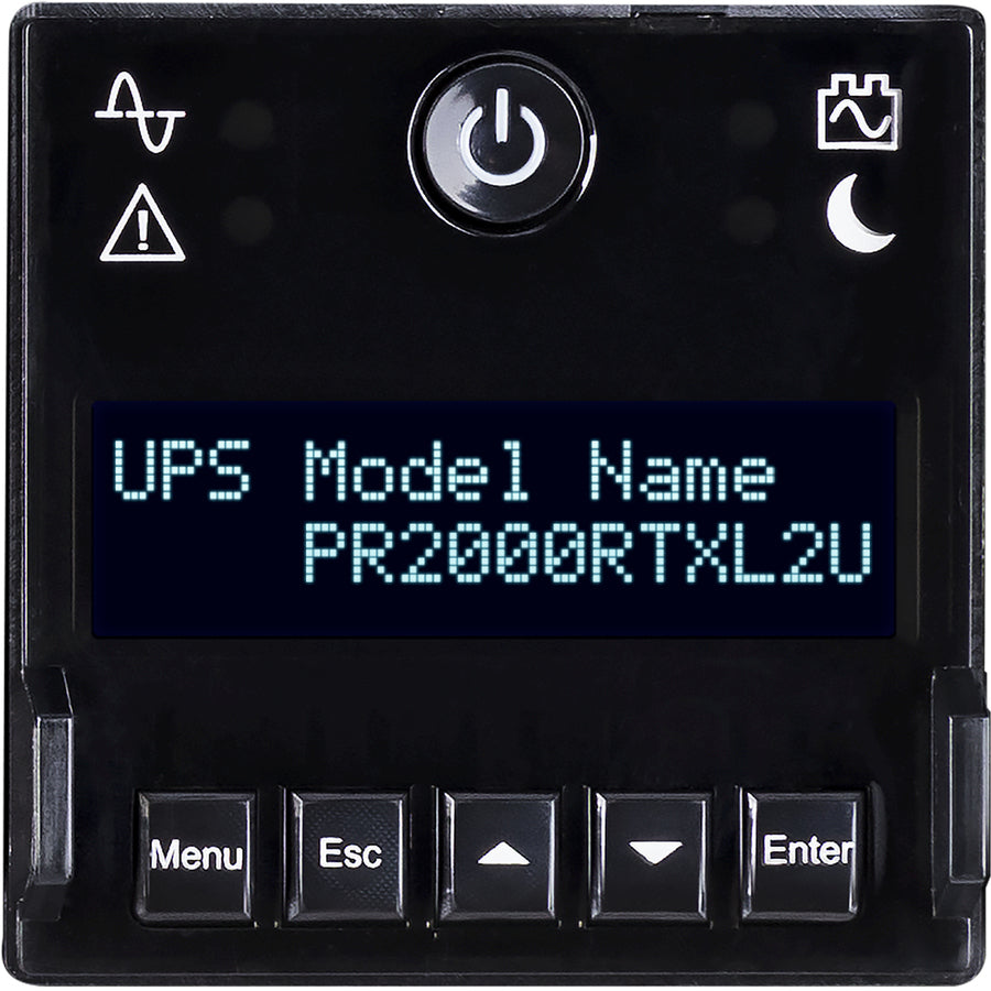 The Smart App Sinewave PR2000RTXL2UTAA improves battery life through battery equalization technology and Automatic Voltage Regulation (AVR), which corrects minor power fluctuations without switching to battery power. The enhanced chassis design with an easy-to-access toolless front panel, captive screws for battery panel access, and color-coded rear panel make battery changes and installations simple and fast. The PR2000RTXL2UTAA also has an innovative LCD panel that rotates 90°, tilts for a better viewing angle, and provides information on 47 different settings including UPS stats, UPS setup and control management, and testing options.