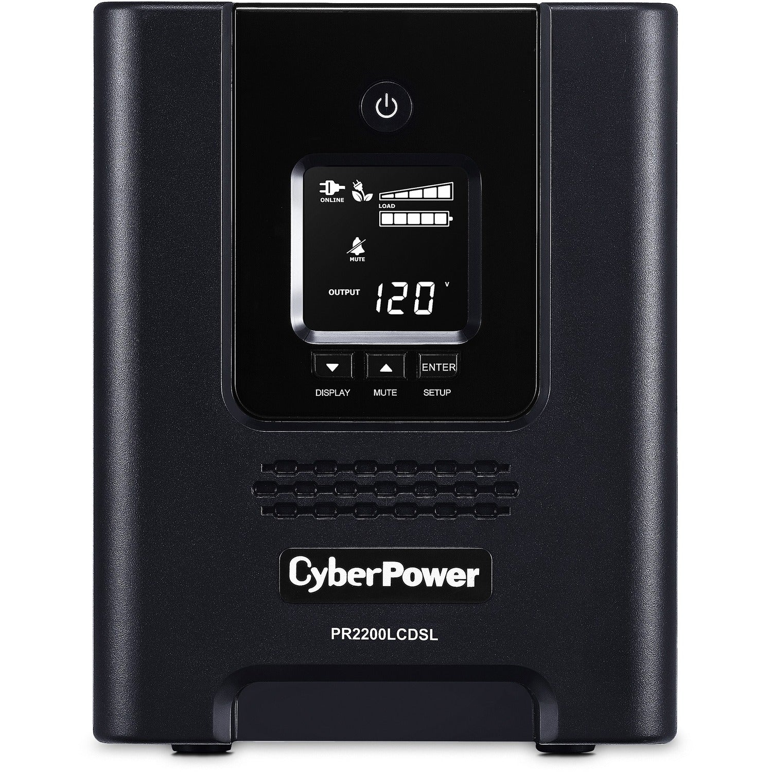 The CyberPower Smart App Sinewave PR2200LCDSL uninterruptible power supply (UPS) with Multifunction LCD and Active PFC compatible pure sine wave output safeguards mission-critical servers, telecom equipment, and internetworking hardware. Automatic Voltage Regulation (AVR) delivers consistent and clean AC power.