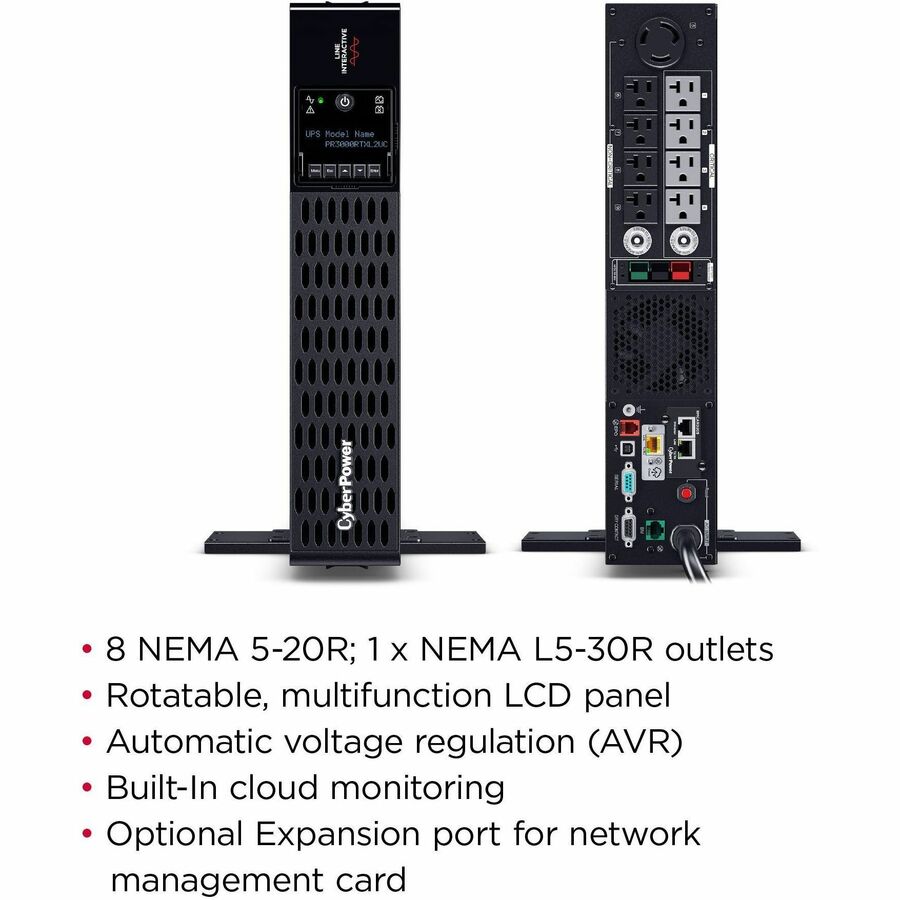 The PR3000RTXL2UC is a Smart App Sinewave rack/tower convertible UPS with line-interactive topology, surge protection, and battery backup. CyberPower's Smart App Sinewave series creates a sine wave output devoid of power gaps which could cause unexpected shutdowns of sensitive equipment.