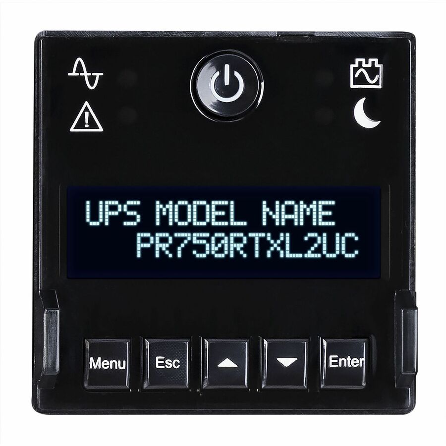 The Smart App Sinewave PR750RTXL2UC improves battery life through battery equalization technology and Automatic Voltage Regulation (AVR), which corrects minor power fluctuations without switching to battery power. The enhanced chassis design with an easy-to-access toolless front panel, captive screws for battery panel access, and color-coded rear panel make battery changes and installations simple and fast. The PR750RTXL2UC also has an innovative LCD panel that rotates 90°, tilts for a better viewing angle, and provides information on 47 different settings including UPS stats, UPS setup and control management, and testing options.