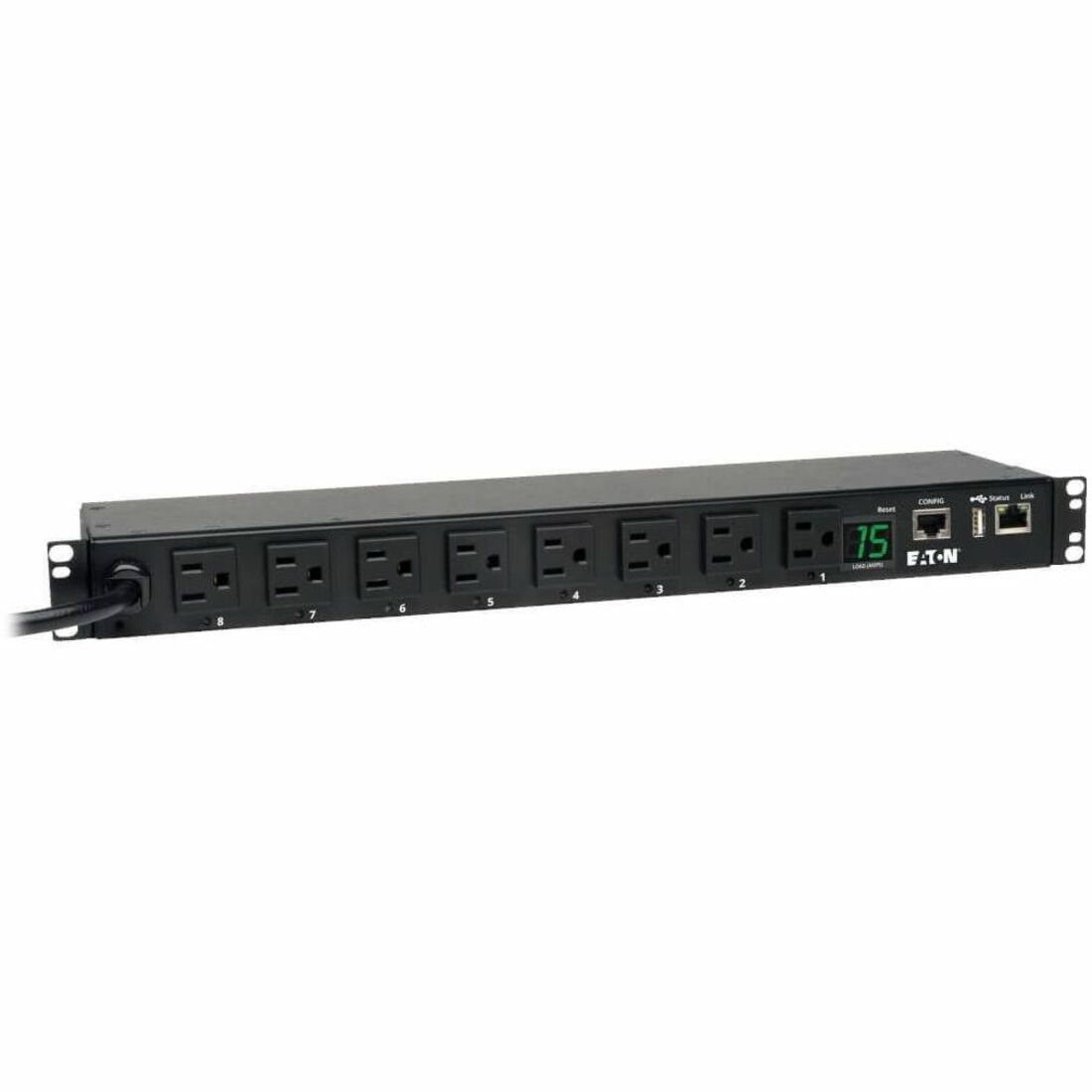 Eaton 1.4kW Single-Phase Switched PDU, LX Interface, 120V Outlets (8 5-15R), NEMA 5-15P, 12 ft. (3.66 m) Cord, 1U Rack, TAA