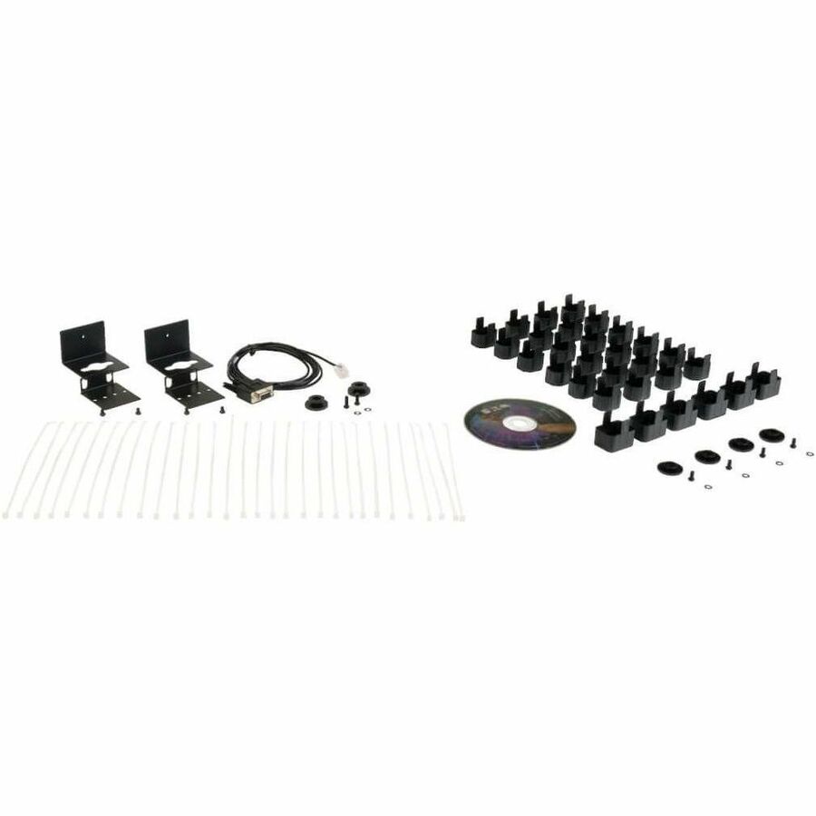 The 70-inch 0U PDU mounts vertically using the pre-installed toolless mounting buttons or the included brackets. Spare buttons are also included. Use the included PDUMVROTATEBRKT kit to install the PDU with outlets facing the rear for better airflow or equipment access. A six-foot cord with NEMA L21-30P 3- phase input connects the PDU to a compatible AC power source, generator or protected UPS.